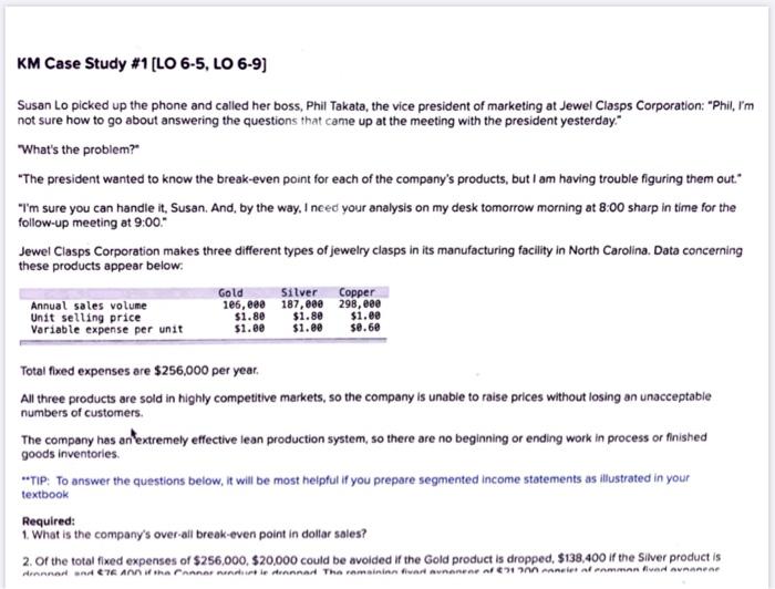 Solved Km Case Study 1 Lo 6 5 Lo 6 9 Susan Lo Picked Up Chegg Com
